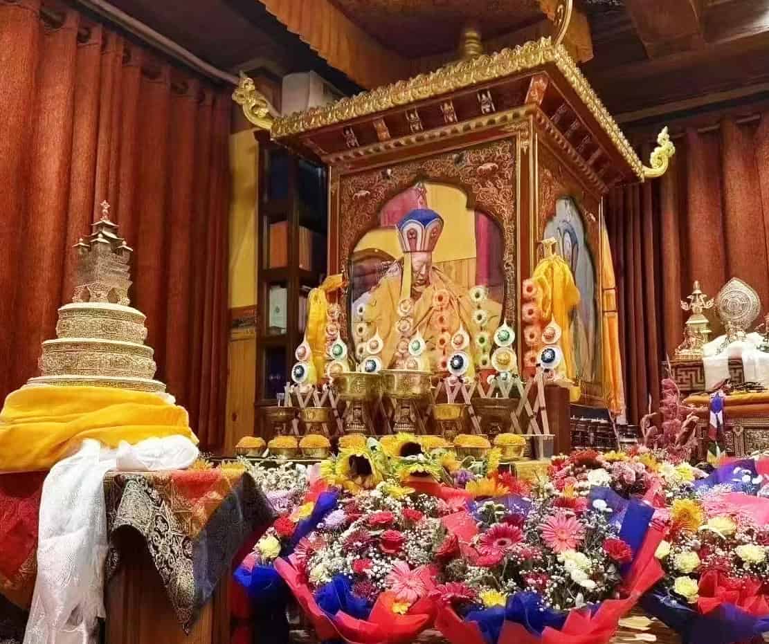 Seit dem Parinirvana des hochgeschätzten und innig geliebten Meisters, Seiner Eminenz Yongdzin Tenzin Namdak Rinpoché, begeht die weltweite Yungdrung-Bön-Gemeinschaft eine 49-tägige Phase des Gedenkens, des Gebets und der Darbringung von Opfergaben, um Segnungen zu empfangen und großes geistiges Verdienst zu sammeln. Am Freitag, den 2. August 2025, fand diese 49-tägige Periode ihren Abschluss. Vom 4. bis zum 9. August wird ein umfangreiches Feueropfer-Ritual gemäß dem Zyklus des Künrig Le Zhi Gyün Nga’i Jin Sek durchgeführt. Während dieses Zeitraums, am 6. August, wird die eigentliche Einäscherung der heiligen sterblichen Überreste stattfinden. Das Künrig Le Zhi Gyün Nga’i Jin Sek ist einer der wichtigsten Texte der Yungdrung-Bön-Tradition, der bei Einäscherungszeremonien und kontinuierlichen Feueropfern verwendet wird. Für diesen Anlass werden eine große Vielfalt und Menge an Opfergaben vorbereitet. Unter diesen Gaben befinden sich viele größere und kleinere Tafeln, die mit Mantras und Gebeten beschriftet sind. Diese werden vom amtierenden Lama vorgelesen, mit gesegneten Substanzen geweiht und anschließend dem Feuer übergeben.